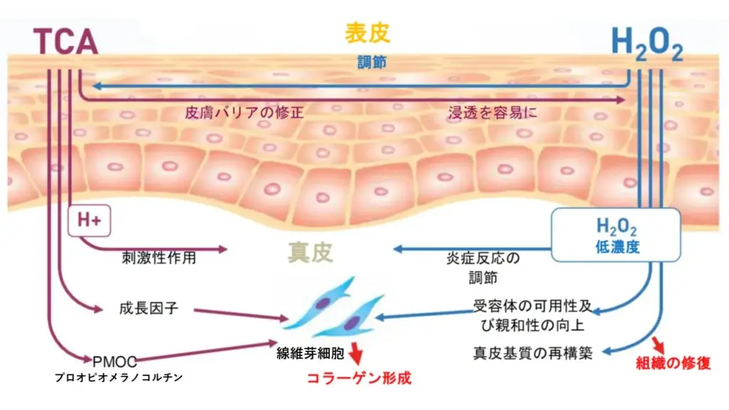 TCAは肌の深部に作用することから高い美肌効果がある反面、強い剥離作用と炎症作用があるため、一般的な美肌治療への使用は難しいとされていました。