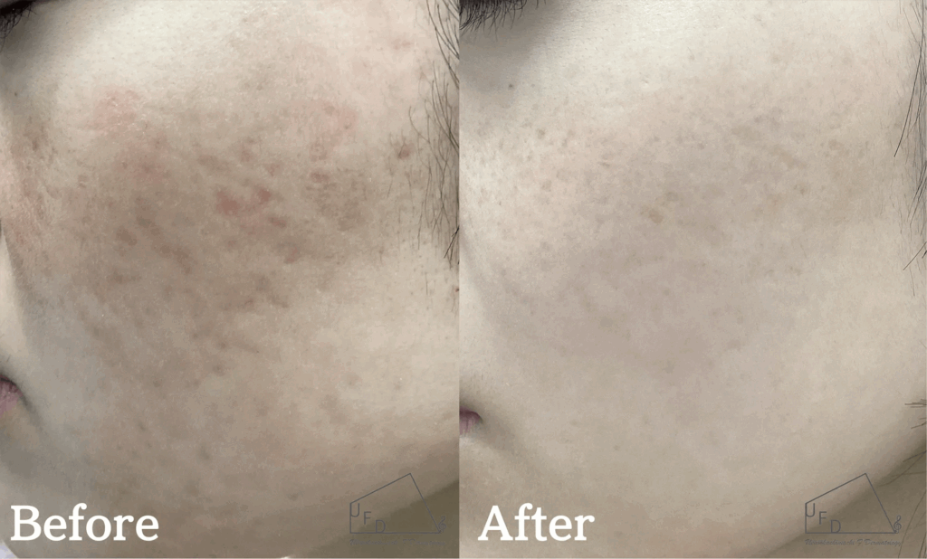 特にポテンツァのドラッグデリバリーモードは皮膚のコラーゲンを作る薬剤を皮膚に均一に大量に導入することができ、ニキビのへこみ跡に対する強力な治療です。