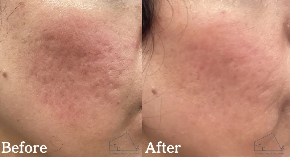 ニキビ跡のクレータータイプ、線維化・瘢痕の深さ、肌の硬さ、ニキビ跡の場所など様々な要素を検討し、患者様のお悩みやご希望を聞きながら治療を行っております。