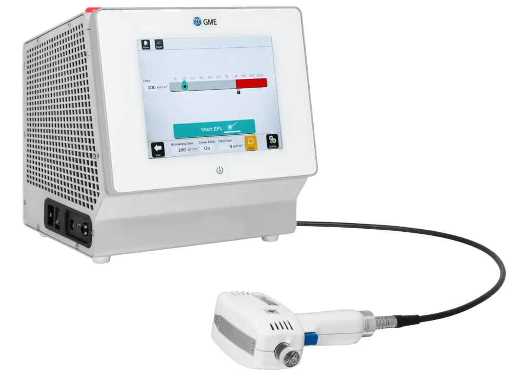 当院では、なかなか治らない皮膚の症状も治療できるよう、 全身型と局所型の紫外線装置を導入しております。 全身型は、全身型ナローバンドUVB装置、局所型はエキシマライト装置になります。
